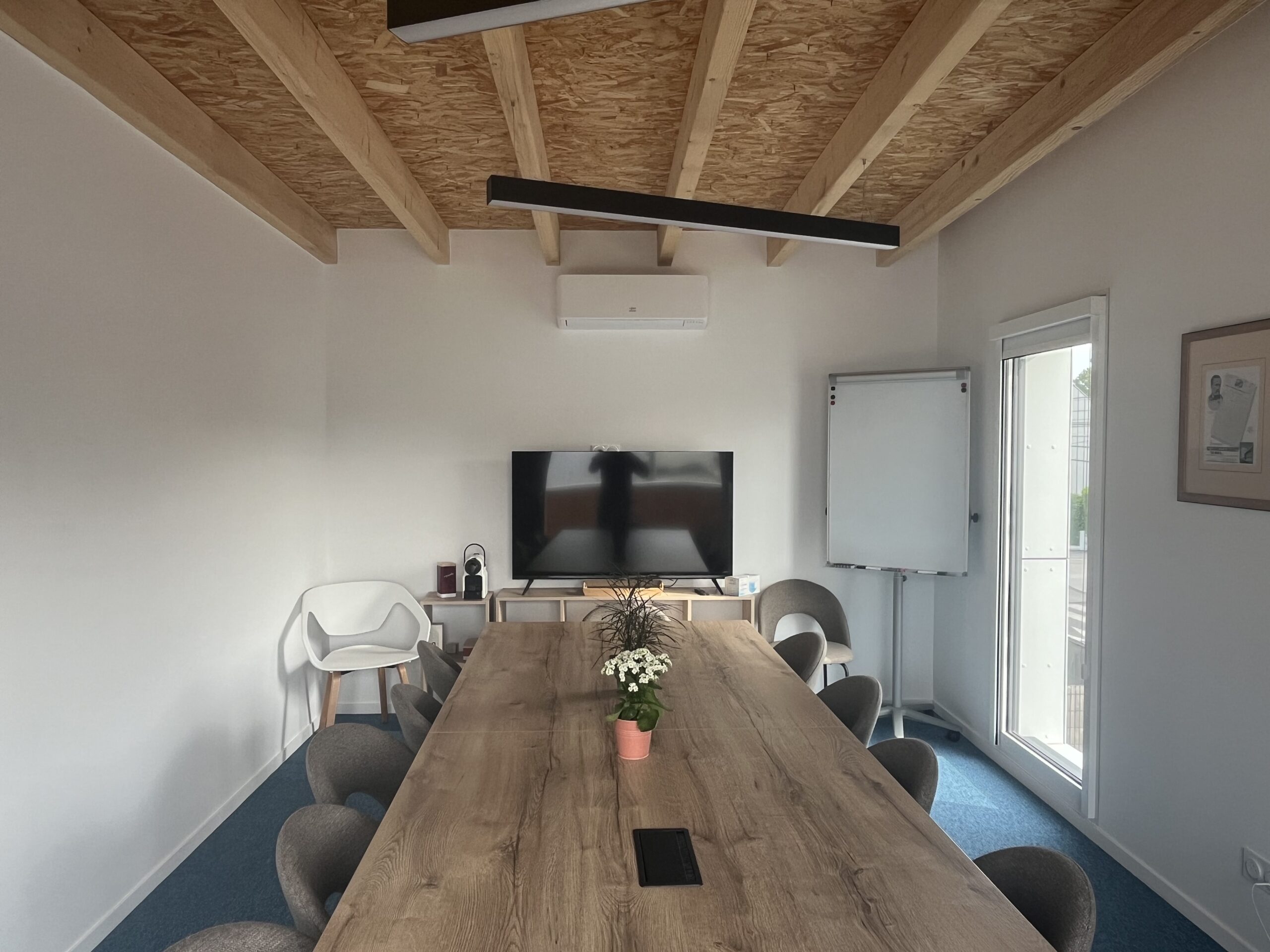 Bâtiment RE2020 en ossature et charpente bois et plancher dalles bois lamellées collées