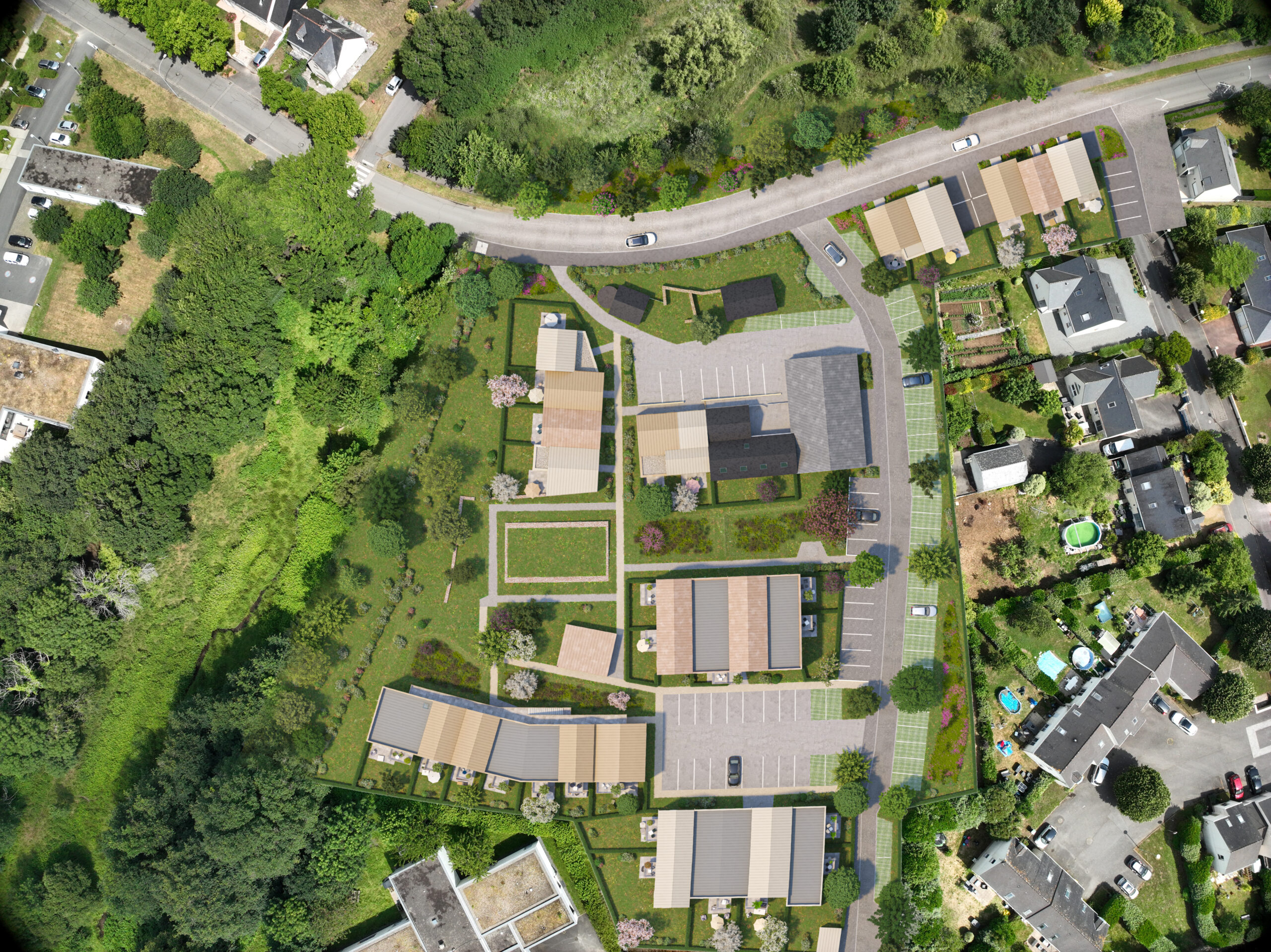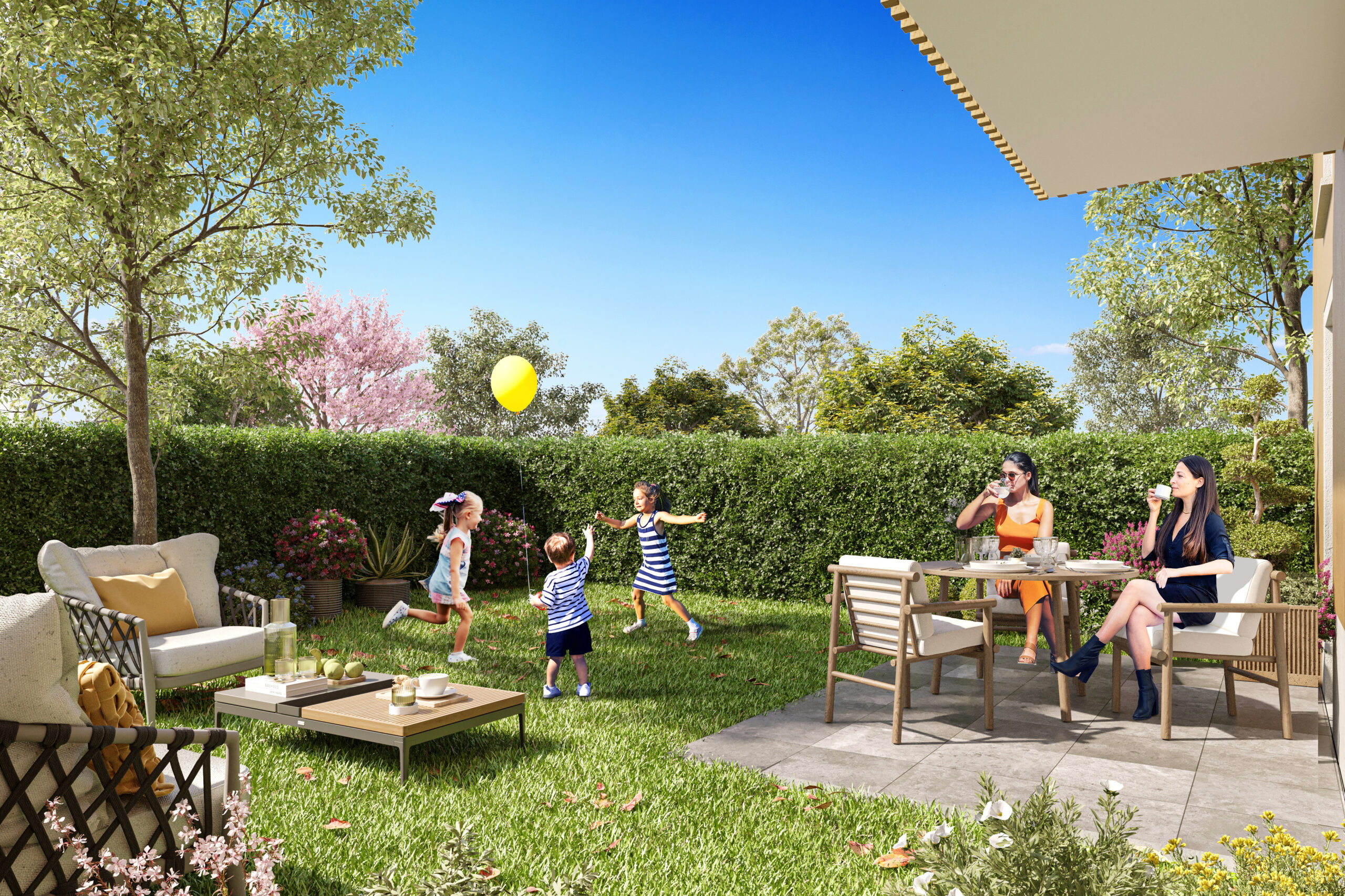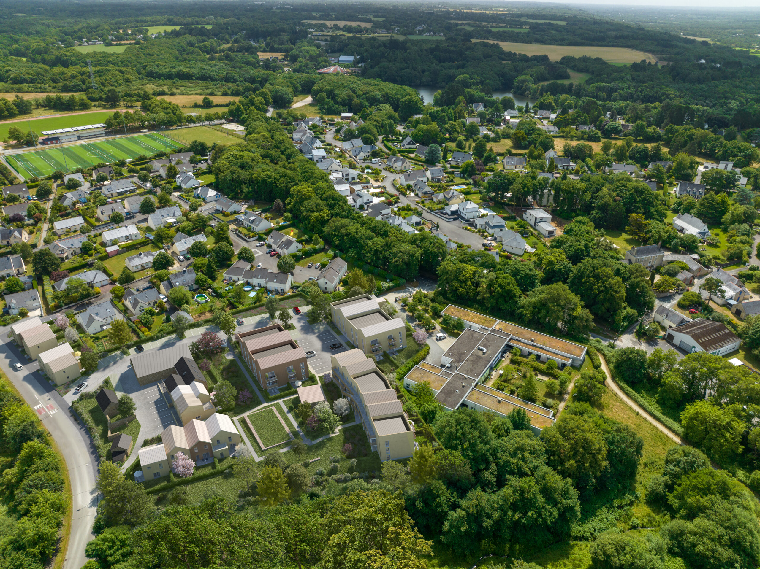 Les bâtiments sont implantés majoritairement selon l’axe Est-Ouest afin de dégager le maximum de percées visuelles vers la Vallée des Soupirs à l’Est, une respiration verte atout majeur du site, et offrir une orientation Sud à tous les logements.