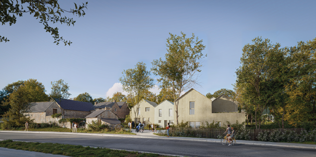 Conservation d’arbres et de patrimoine bâti existant (four à pain, grange transformée en local vélo).